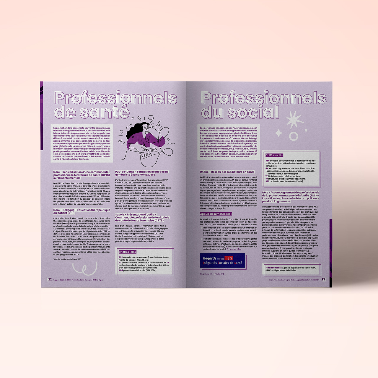 Oh Punaises?! - guide pour agir face aux punaises de lit, Nos Petits Plus - guide du projet des conciergeries solidaires en QPV, Promotion Santé ARA - rapport d'activité, IREPS ARA - rapport d'activité, Lucie Béguin - book de l'artiste, Le Film du Jour - magazine cinéma.