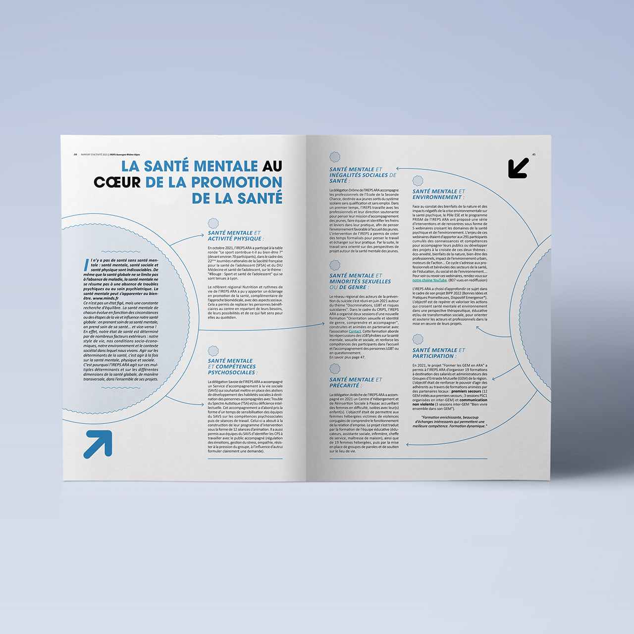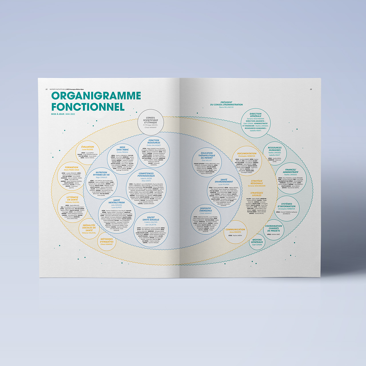 Rapport d'activité, publications, magazine, guide, ouvrage d'art... l'enjeu principal est le même. Mettre en image données et synthèses, les rendre plus facilement consultables et agréables à lire, donner à voir/incarner visuellement des valeurs.